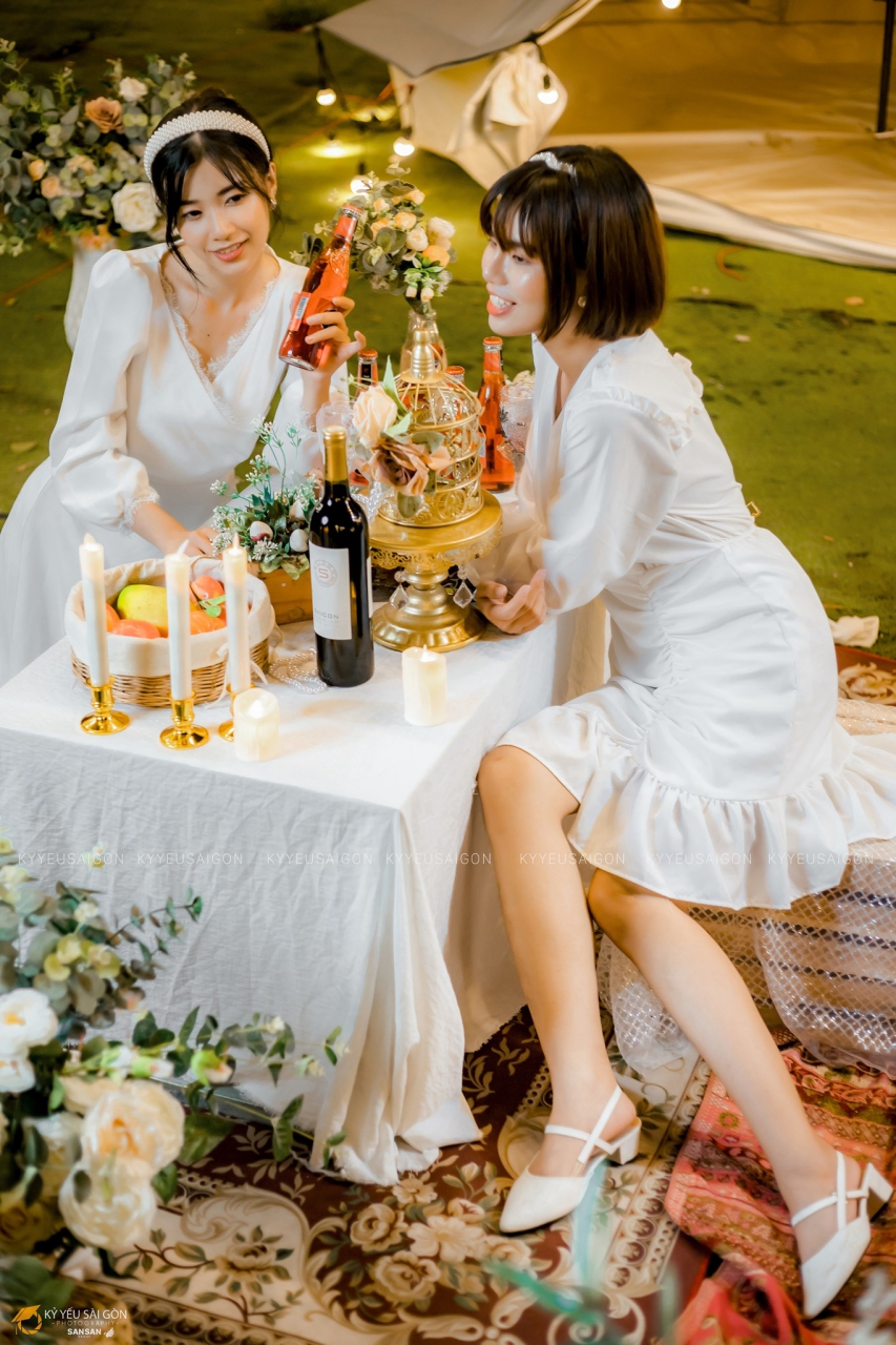 Một bữa tiệc đầy màu sắc và tiếng cười sẽ được tái hiện qua concept này. Những khung hình sôi động, vui nhộn sẽ giúp bạn lưu giữ những khoảnh khắc tuyệt vời cùng bạn bè. Khách hàng sẽ được chụp trong không gian tràn ngập bóng bay, đèn neon, hoặc khung cảnh picnic ngoài trời. Các đạo cụ như pháo sáng, pháo giấy, hoặc ánh sáng nhân tạo sẽ tạo nên bầu không khí tiệc tùng sống động.