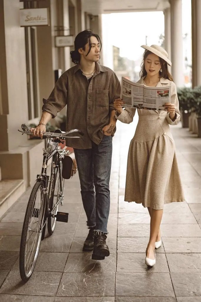 📍 Địa điểm phù hợp: Quán cà phê vintage, đường phố cổ Hội An, hoặc khu phố Pháp ở Hà Nội.