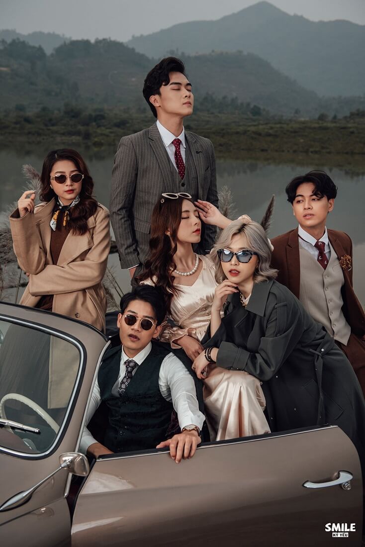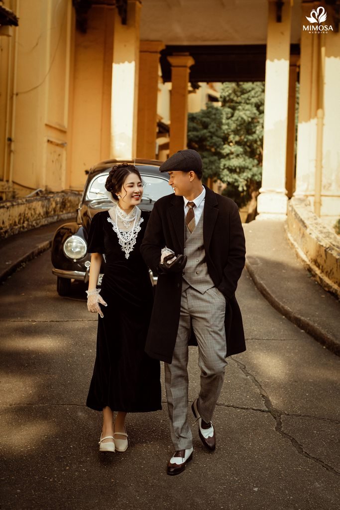 🎭 Trang phục & Đạo cụ: Váy dài vintage, suit cổ điển, mũ beret, vali cổ, hoặc kính mắt retro.